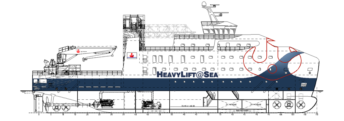 Combination of all essential requirements for a medium-sized heavylifter. The ship concept is scalable. It allows the variation of some parameters (length, width, hold width, crane capacity) to achieve an optimum for the specific application.